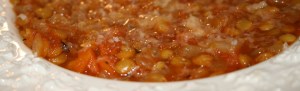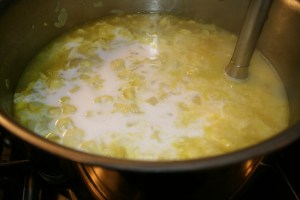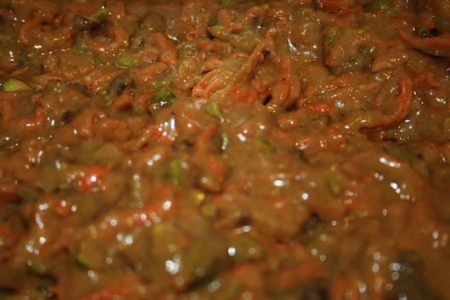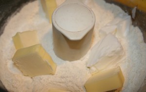 Although the epicurious recipe also says you can use your fingers, I think this should be avoided. I don’t know much, but since you bothered to keep the butter and shortening cold, I think using your fingers might warm it up too quickly, thereby affecting the way the flours and fats get coated in each other. I believe those little pockets of fat are what you WANT, so you don’t want it to blend too finely. You want it to look roughly like this: