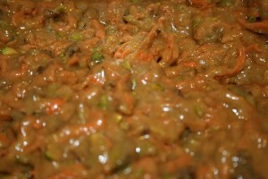 Set aside the mixture, because now it’s time to roll out the dough! This would also be a good time to preheat the oven to 425 degrees F. I place a cookie sheet either directly on the shelf I’m using (middle position) or just beneath to catch any errant juices that escape..it saves loads of clean-up!