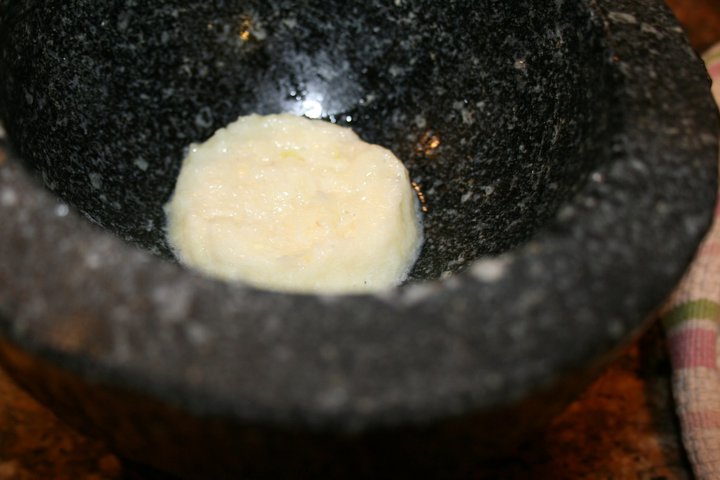 Next, 0ne of my favorite new discoveries: the garlic-salt mash…it really makes a difference in the blending of the delicious garlic-ky flavor.