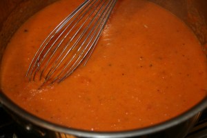Yummy, homemade roasted tomato soup demystified! Tomato soup, for me, has always been a mysterious concoction, usually via a can and with a list of ingredients it would take a day and half to read and longer to learn how to pronounce. But now, thanks to one half of a great recipe from epicurious.com, and a little tinkering, I don’t think I will ever want or have to buy it in the store again!