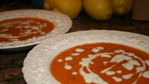 Now you’ve done it! You’ve made your very own roasted tomato soup! As you may have noticed from the recipe on epicurious, there IS another half to this soup: the Roasted Yellow Pepper soup.  It’s also a delicious soup. But the truth is, both soups are wonderful enough to be served on their own. Learning this half can just be your first step, but I think it is certainly nice to have a simple and yummy tomato soup recipe on hand when you don’t feel like going the whole nine yards!