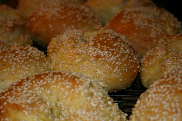 Place the bagels in the oven and bake for 20-25 minutes. I have generally found, in our oven, that it takes a bit longer than that to get a nice brown. You just want to keep an eye on them towards the end of the baking time. However, as we discovered last night, you can’t go too wrong!
