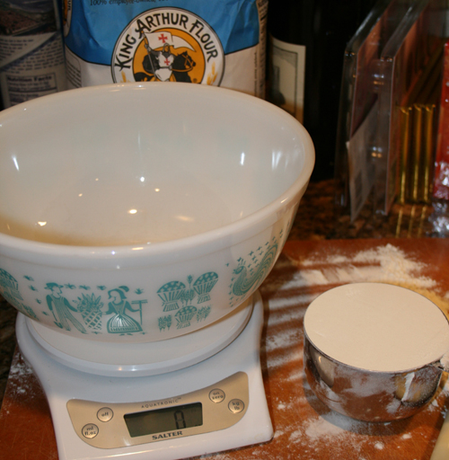 After the dough has rested five minutes, there will be another session of weighing, in honor of my dear husband, whose heart skips a beat every time I use the scale!