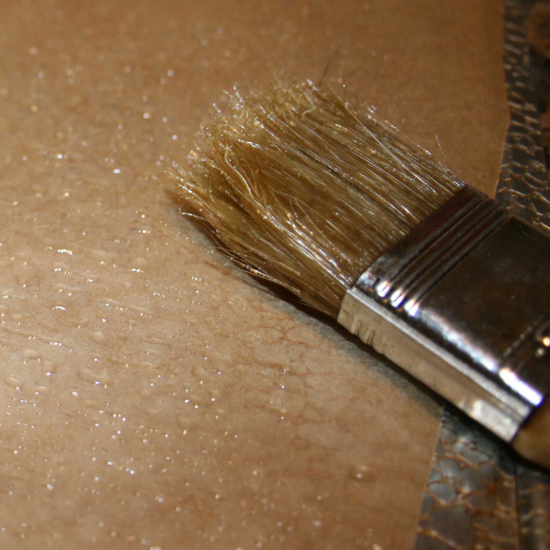 Once your first set is down on the baking sheet and the next set is in the pot boiling away, get your brush and start covering the bagel tops and sides with the glaze.