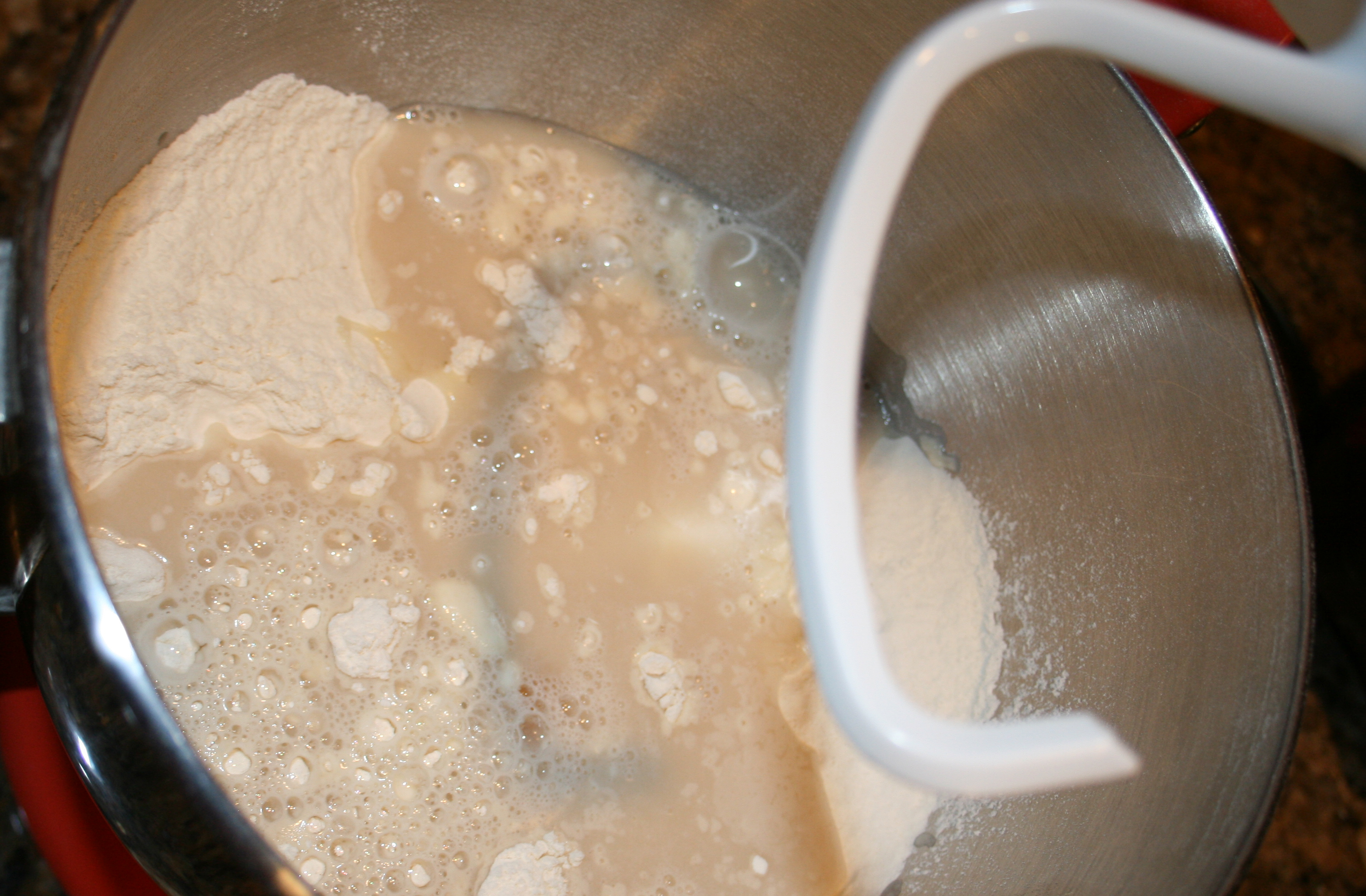 Set bowl aside, preferably in a warmer part of the kitchen. In our case, that means on top of an oven at 200 degrees. Our kitchen is NOT warm.