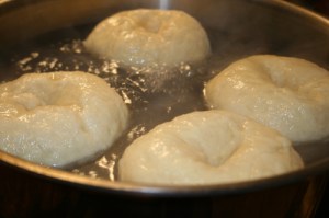 We had about a zillion different cooking projects going on at once, good plan! My hubby was trying out his first Dashi, a Japanese soup stock. We were preparing dinner. And OF COURSE the bagels got left in the dust. What we learned, though, is that, well, they’re still great!