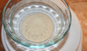 First, we must get those little yeast bits producing! Get 100ml of lukewarm water and add it to a medium bowl. Next, and this is because I find it easier to add the powdery and light yeast to the water and not the other way round, pour in your 3 tsp. (or 12 g) of yeast.